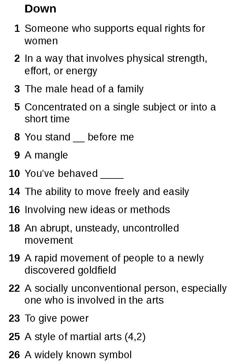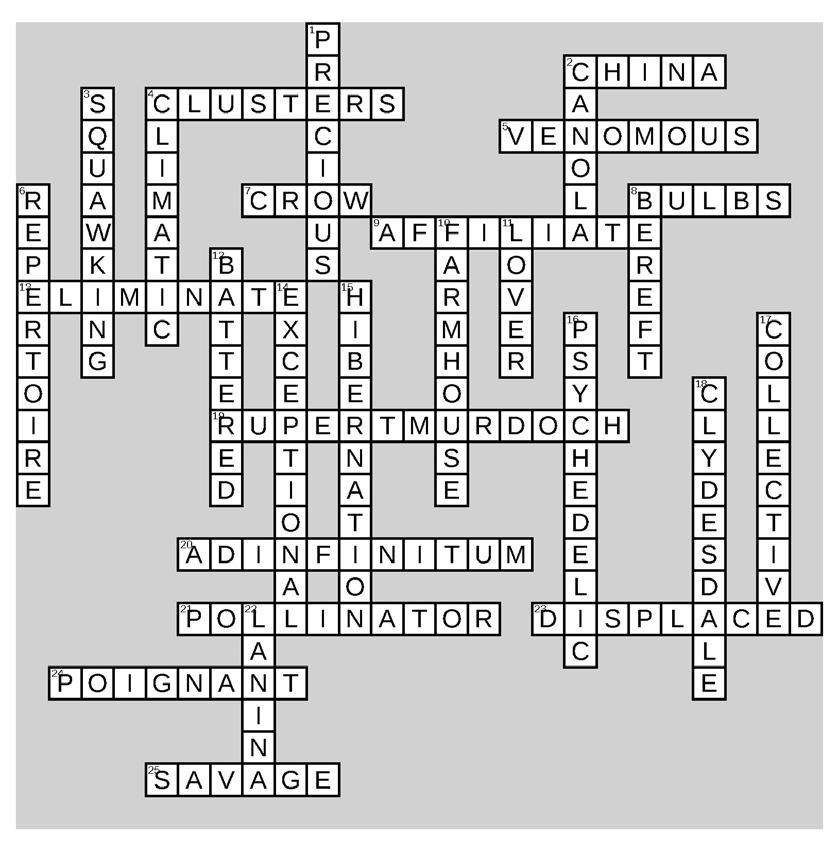 Here is the solution to crossword for edition 262. Each edition, all the words appear in that edition somewhere. How did you go?