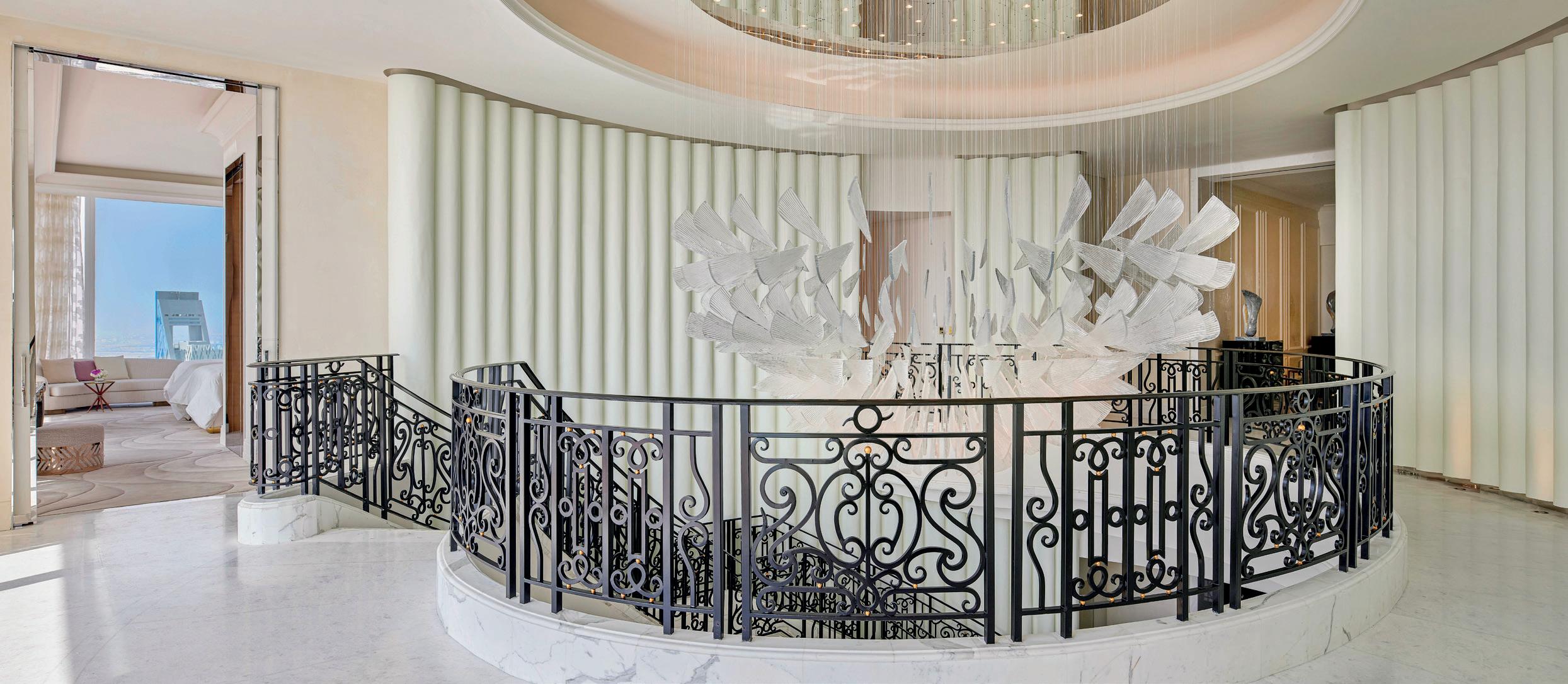 a 23m long elevated water feature is designed in the west wing is completely cladded in Port Laurent marble that required alot of special care upon execution.