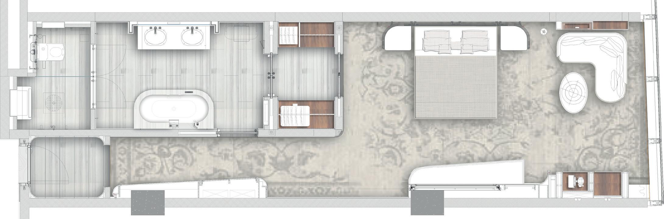 the main challenge of the design is the wall finishes and the interfaces of the finishes to be coordinated with one another to achieve a clean and delicate end-result.