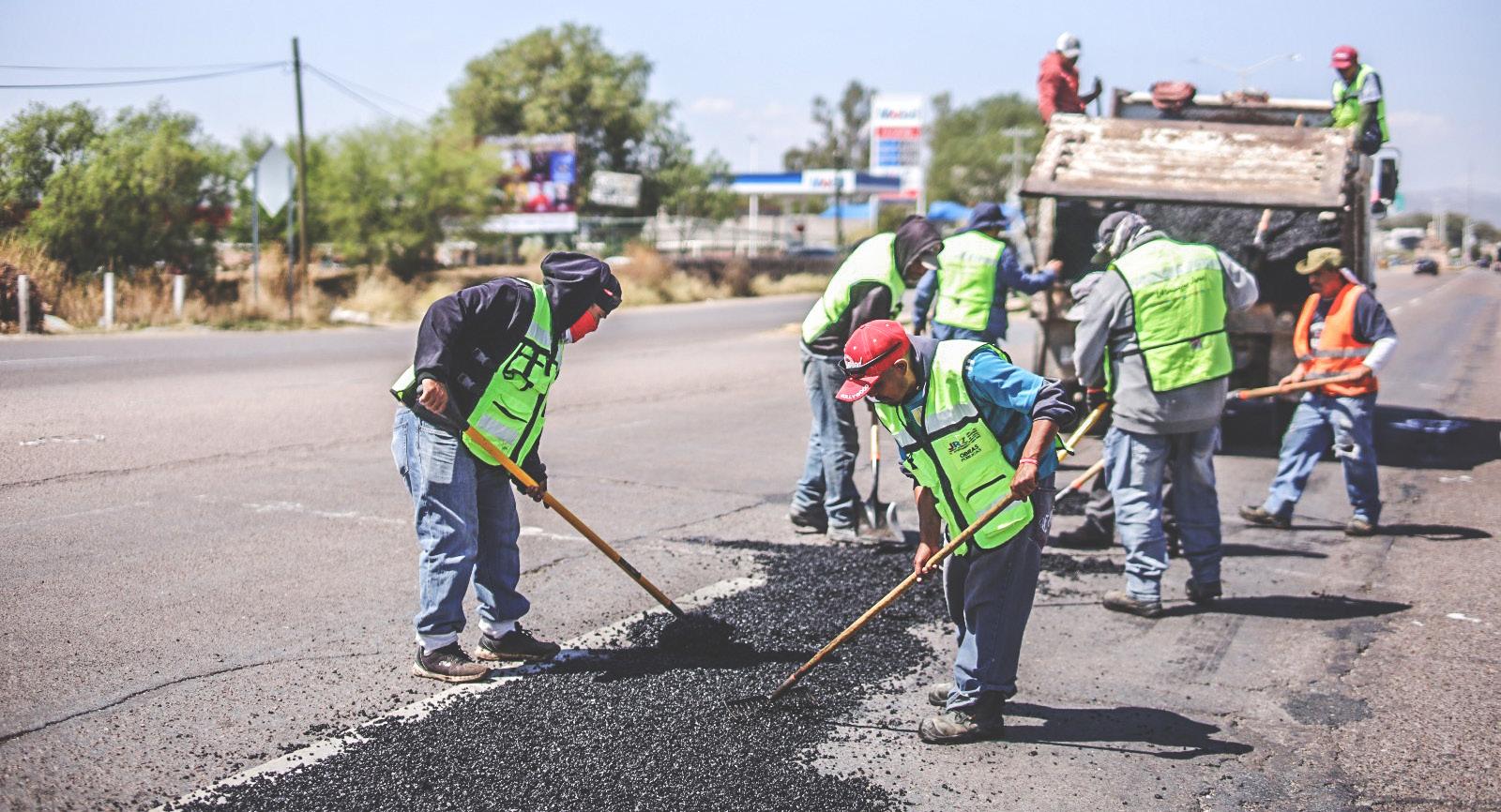 Con miras al periodo vacacional, los trabajos de bacheo con asfalto se han intensificado en las principales vialidades y accesos del municipio de Jerez.