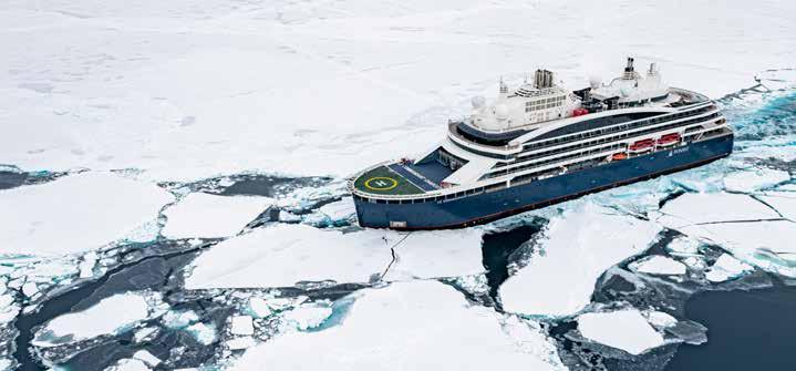 Moderne Expeditionsschiffe mit entsprechender Eisklasse bieten in den abgelegenen Polarregionen der Arktis und Antarktis als „schwimmende Hotels“ eine komfortable Unterkunft mit Vollverpflegung.