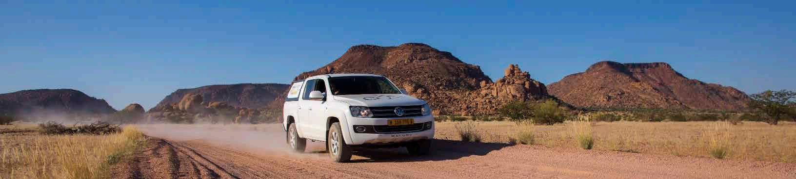 Namibia: Nach einer Reifenpanne dürfen diese nicht geflickt werden, sondern der Reifen muss ganz ersetzt werden. Auch für Sandblasting Schäden (Schäden an der Lackfarbe) werden Sie verantwortlich gemacht. Es wird empfoh len während eines Sandsturms nicht mehr 40 - 50 km/h zu fahren oder zu nahe hinter einem anderen Fahrzeug zu fahren.