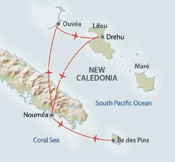 Transport und Verkehr: Es herrscht Rechts verkehr. Die Hauptinsel Grande Terre und die Hauptstadt Noumea sind an ein ausgedehntes Busnetz angebunden. Die meisten Strassen sind in gutem Zustand, daher kann man auch mit einem MIetwagen selbständig reisen. Air Cale donie und Air Loyaute verbinden die Hauptinsel mit den Iles Loyaute. Auch auf den Nachbarin seln kann man eine Mietwagen buchen. Alle Unterkünfte bieten auch direkte Transfers. Ansonsten herrscht zwischen den Inseln reger privater Segelbetrieb.