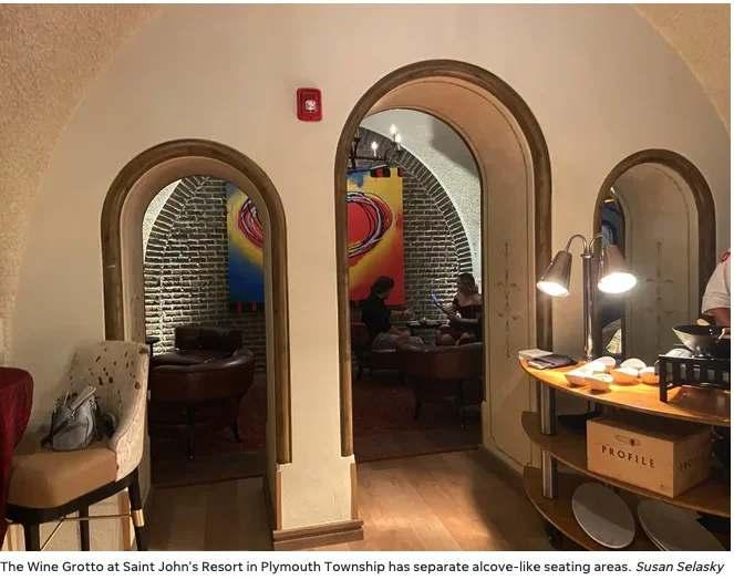 This lower-level space at Saint John's Resort in Plymouth has dim lighting emits the sense of being in a secluded space away from all else. The underground space, a renovated former prayer area for seminarians, is cozy with its domed coves and restored arches and comfy dining areas. Nosh on flatbreads, shareables, charcuterie and cheese while enjoying wines.