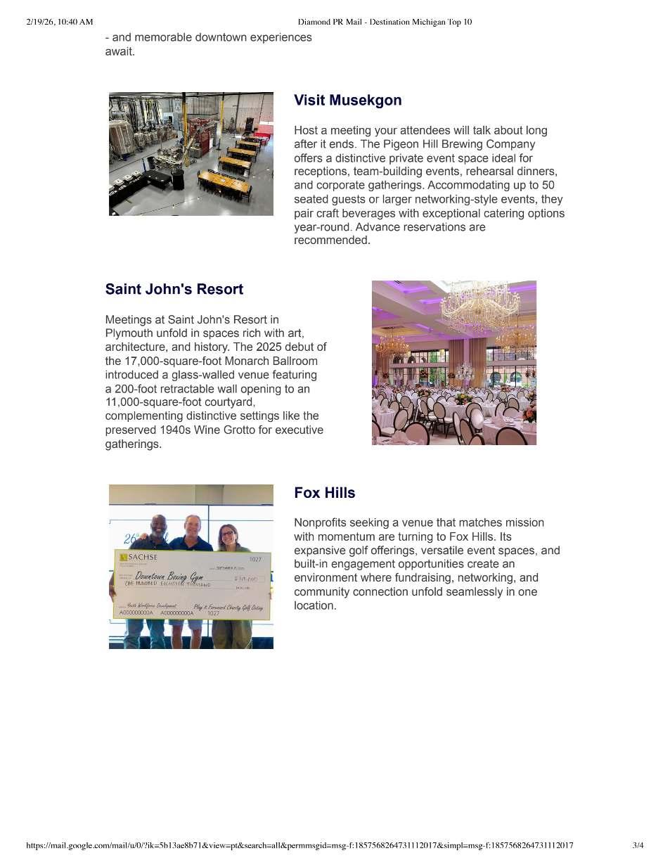 44045 Five Mile Road, Plymouth; 734-357-5976 or saintjohnresort.com.