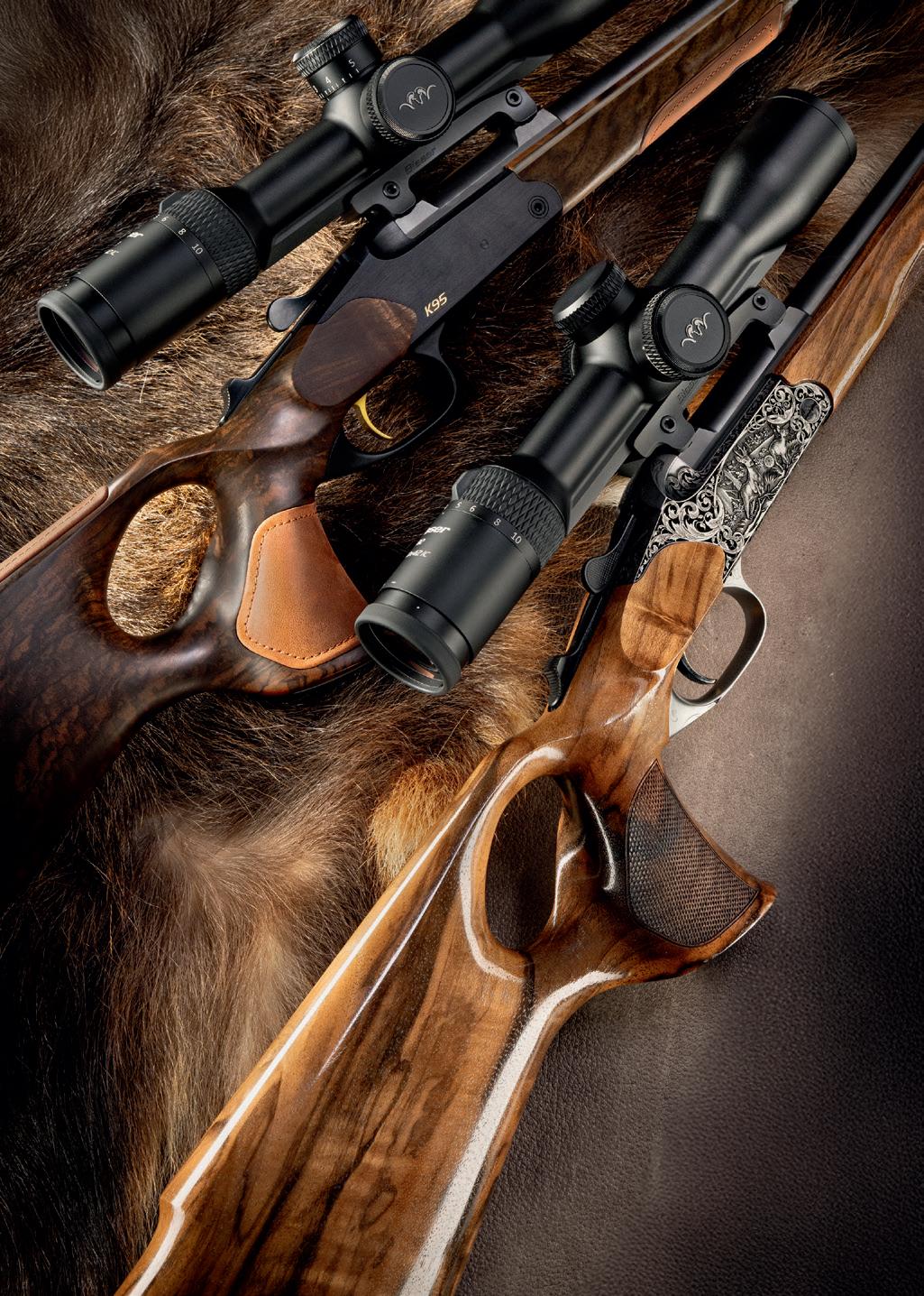 Two masterpieces, one unmistakable character: the K95 in its Grand Luxe and Success Vintage interpretations. Where delicate engravings and vivid game motifs adorn the anodized receiver of the Grand Luxe, the Success Vintage reveals its warm allure with refined leather details, golden accents, and hand-selected wood with a matte finish. Two faces, one essence –uncompromising precision, legendary safety, and an aesthetic that unites tradition and modernity. Discover the facets of true distinction. More motifs at www.blaser.de