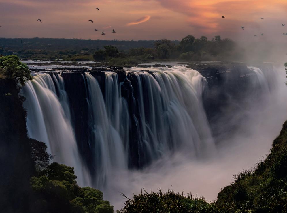 • Gigantiske Victoria Falls, nogle af verdens største vandfald