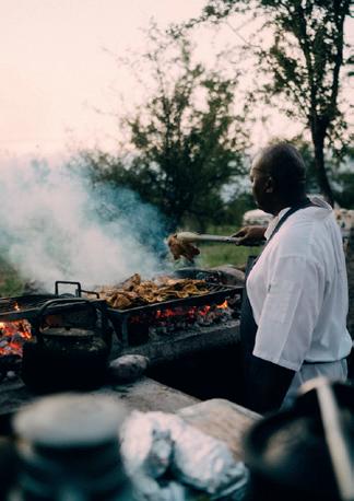 Køkkenet er et kapitel for sig, og der kæles virkelig for det delikate afrikanske køkken, hvor vildtet ofte er tilberedt over det glødende ildsted. Farmen drives af Julius og hans kone Madelene, og de sætter begge en ære i at give deres gæster en uforglemmelig oplevelse.