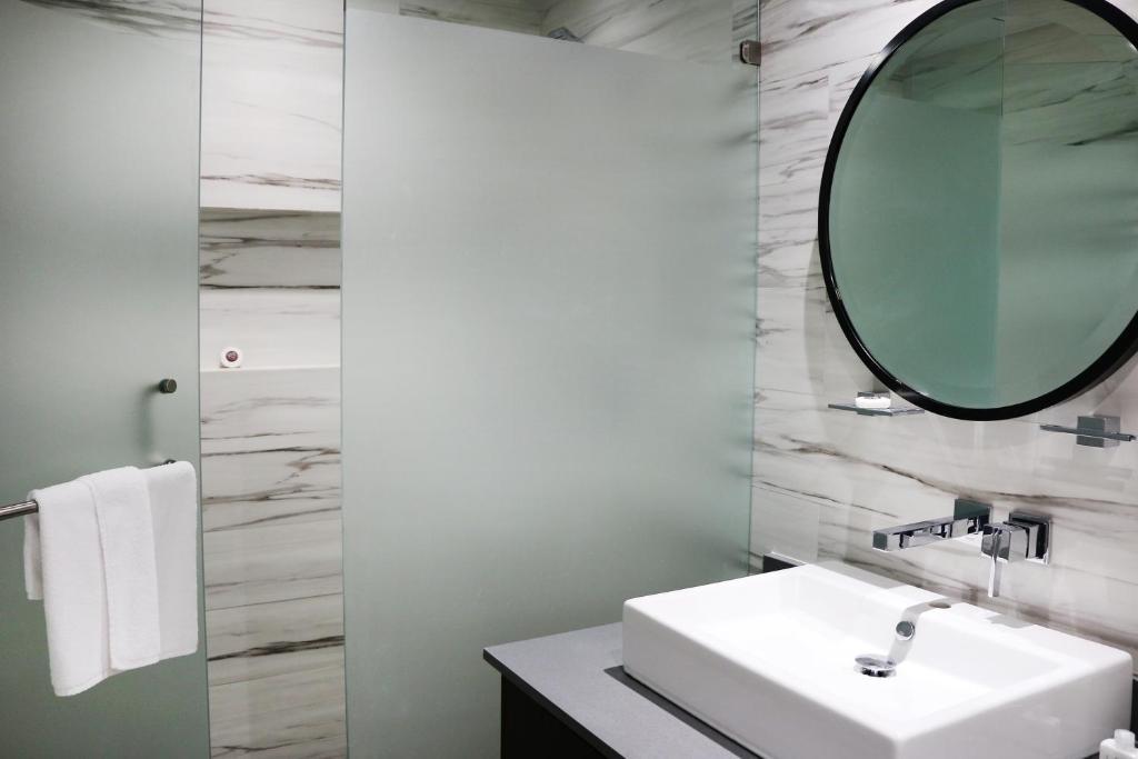 Baño privado con artículos de aseo gratis, ducha, WC, toallas y papel higiénico Vistas al mar, al jardín, a la piscina o la ciudad.
