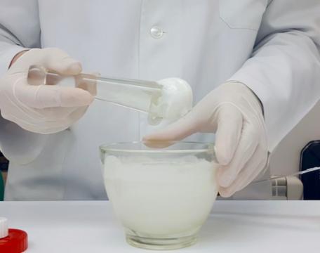 3. Preparación de la fase dispersante: En un vaso aforado, medir 50 ml de gel de metilcelulosa al 1%.
