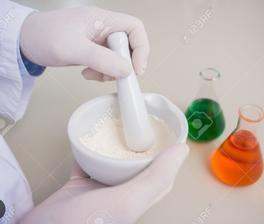 Colocar el 5-Fluoruracilo en un mortero seco y limpio.