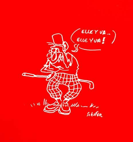 Autre grande figure permanente de nos dessins, celle d'André Faber. Une vieille fidélité personnelle et un talent dingue que ce soit pour le trait comme pour l'esprit de ses œuvres. Son strip du café de la place nous fait tortiller sur les tabourets, sa synthèse des sujets nous ouvre des horizons, sa plume dans ses romans (nous avions passé La Quiche était froide en feuilleton) nous bouleverse. Son Chat souris à Metz paru aux Éditions de La Semaine s'est écoulé comme un rêve. Il est au rendez-vous de chacun de nos numéros un peu spéciaux... et pour celui-ci, il a mis dans le Mille. Pas étonnant.