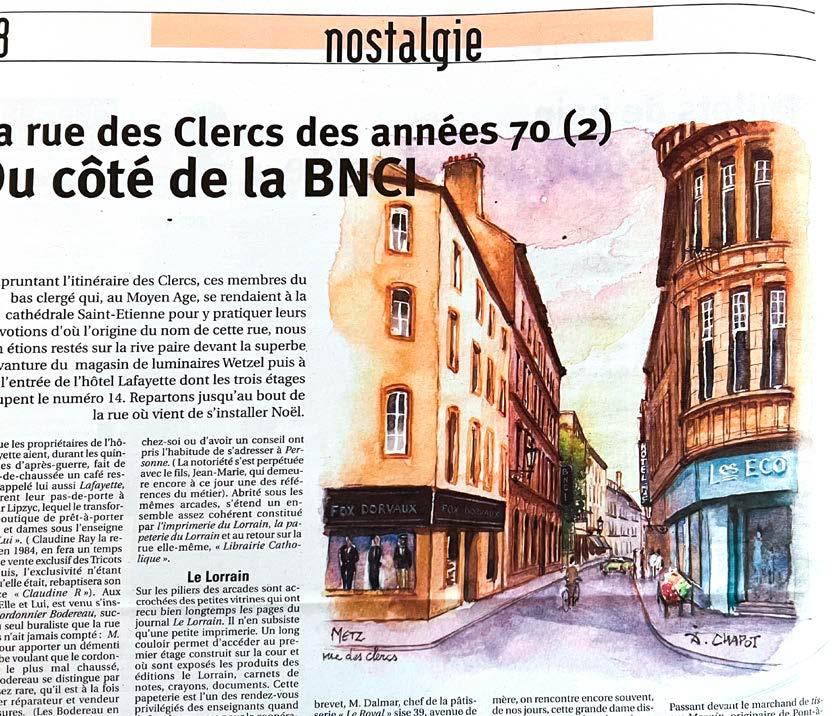 Bien avant que les réseaux sociaux en soient inondés, La Semaine avait fait de l’évocation de notre cadre de vie quelques décennies auparavant, une promenade hebdomadaire. Dans les rues de Metz des années 60 par exemple, avant la piétonnisation et les franchises. De la gare à la cathédrale en passant par la place Saint-Louis ou la rue des Allemands. Des documents anciens qui nous étaient prêtés, des aquarelles, mais aussi et surtout l’évocation par Jean-Jacques Wolff des enseignes et des aventures commerciales. Pour la rue Serp’ il avait fallu trois semaines... Autre temps ! Idem pour la rue des Clercs.
