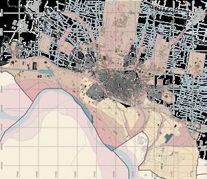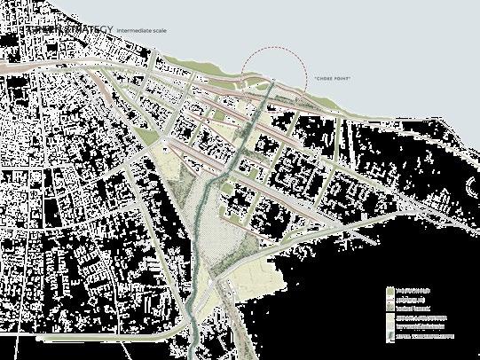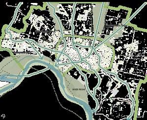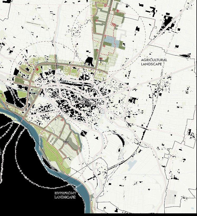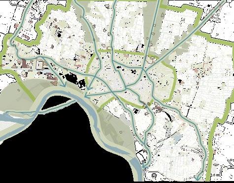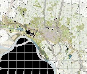 In this municipal scale, the applied strategies become more evident and the urban factors influencing is are move visible. The green strategy that has been applied to the bigger scale - provincial scale- extends into the city, with these blue and green corridors, reaching the Po river. Several areas are identified as potential focal points, demonstrating the opportunities for urban landscape intervention which will support the main strategy.