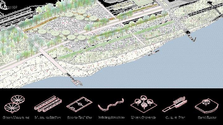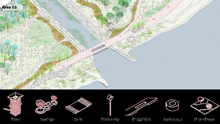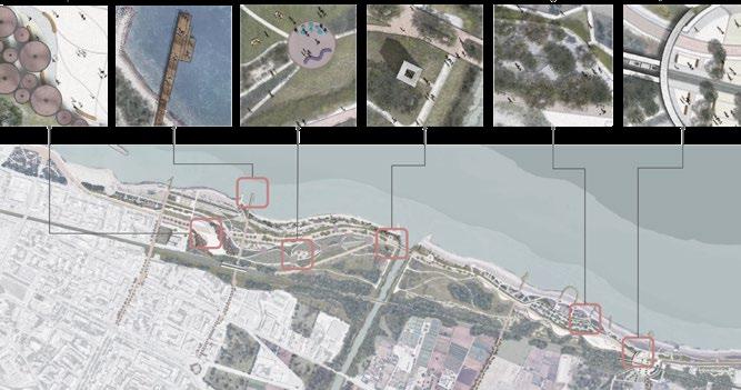 Additionally, each macro area focuses on regenerating and improving various community facilities located at strategic points. These facilities, along with key landmarks, are essential for achieving the strategy’s ultimate goal: allowing people to experience each unique landscape and its natural systems.