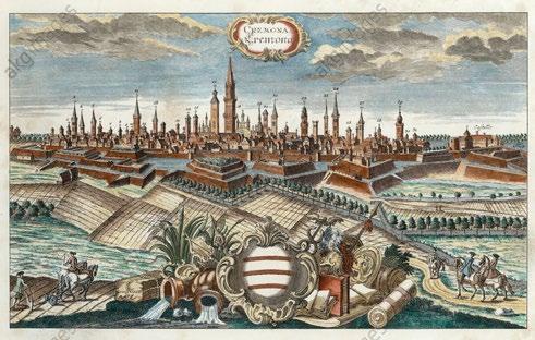 Cremona by Werner, Friedrich Bernhard 1740Cremona is situated within the Pianura Padana landscape typology, which refers to the Po Valley. This valley spans approximately 46,000 square kilometers and is bordered by the Alps, the Adriatic Sea, and the Apennines. Numerous rivers flow through this region, with the Po being the most significant. These rivers create unique natural conditions that shape the landscape, where urban, natural, and agricultural areas intersect.