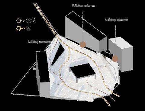 The areas with the densest lace texture on the flooring, which also happen to be the highest elevation points of the site, will be designated for high-intensity activities such as exercise, work, outdoor meetings, and learning sessions. Conversely, areas with the least dense lace texture will be allocated for low-intensity activities such as seating, socializing, or simply providing space for mental refreshment.