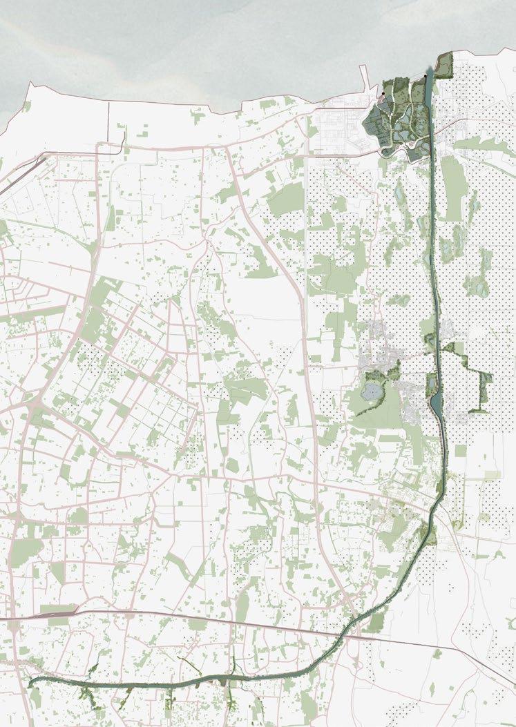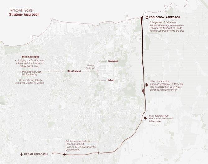 + Canal as a Bridge between the City Fabric of Jakarta and Rural Fabric of Bekasi (West Java) + Canal as a Platform to Enhancing the Green Belt Connection + Canal as a Media to Re-Introducing Jakarta as a Delta City for its Citizen