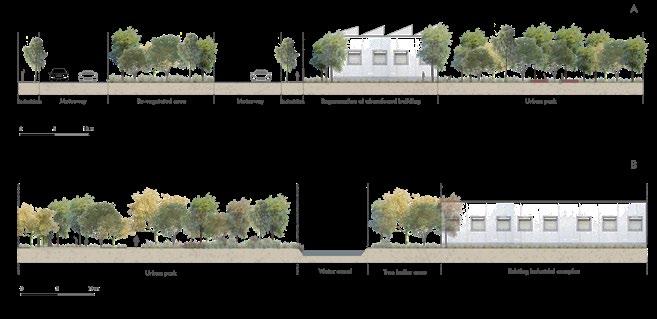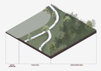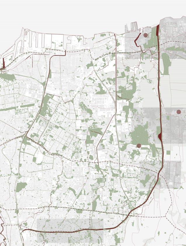 The strategy aims to regenerate the main blue corridors, thereby improving ecosystem quality. Additionally, two green belts are proposed to serve as merging edges for different configurations of urban and productive elements. This approach strengthens the integration of natural elements into a complex system, using this enhanced network as a guideline for more in-depth planning and development.