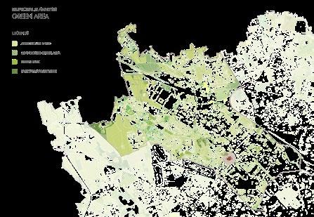 The green area map reveals the distribution of green spaces within municipal 8. It is evident that the majority of green areas are concentrated on the outskirts, primarily comprising agricultural land. As one moves towards the city center, the green spaces consist mainly of public parks and street green strips.