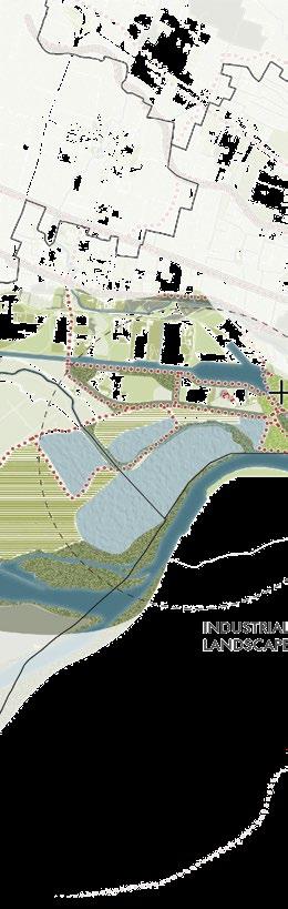The main strategy focuses on establishing ecological corridors that enhance the value of agricultural fields. As these corridors enter the urban environment and approach the Po River, they integrate into a larger system. By creating continuity through blue infrastructure, the strategy incorporates green belts to extend into the urban area and connect with city canals. Consequently, the strategy progresses through different phases and is applied to four areas: agricultural landscape, urban landscape, industrial landscape, and riverfront.