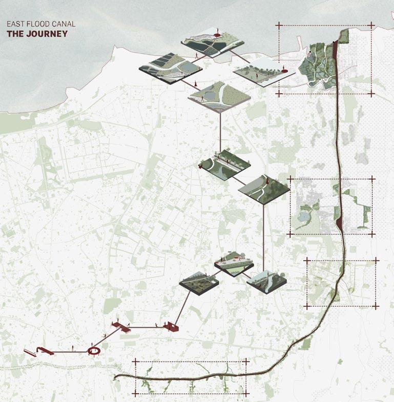 This project aims to implement urban and ecological strategies to regenerate East Flood Canal in Jakarta and how each fabric could activate and initiate development throughout the canal. Moreover, improving the canal will bring a domino effect for other aspects on the bigger scale (the city), from an environmental aspect, social - cultural, and economic.