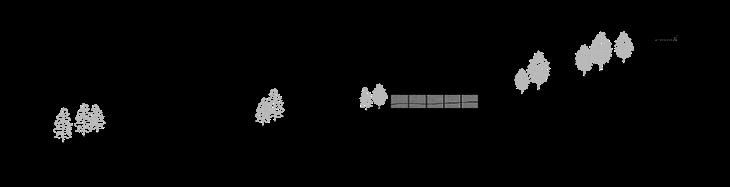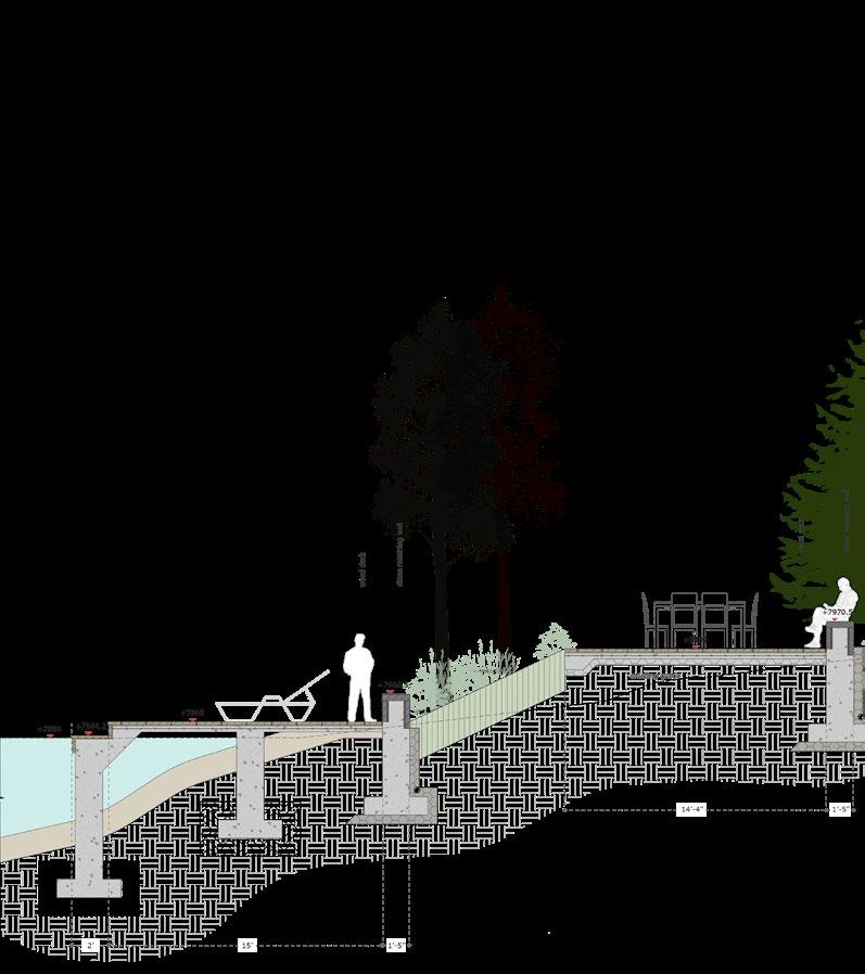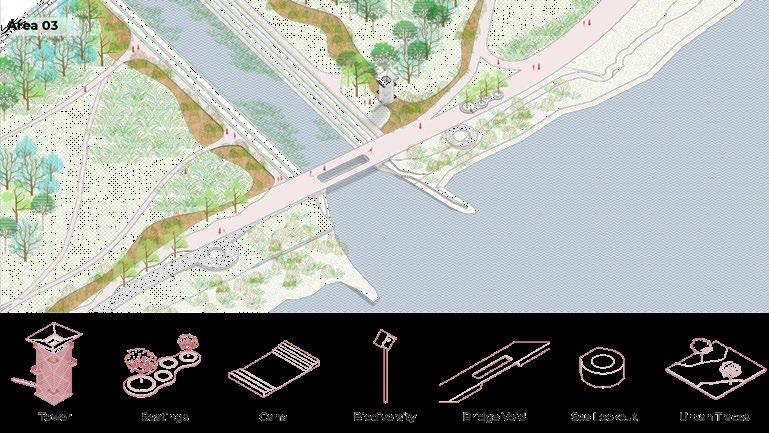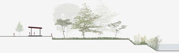 It will have some core areas, and corridors which integrate the cores. In the section we can see how the plants and trees are fading away as the area can be more accessible by people.