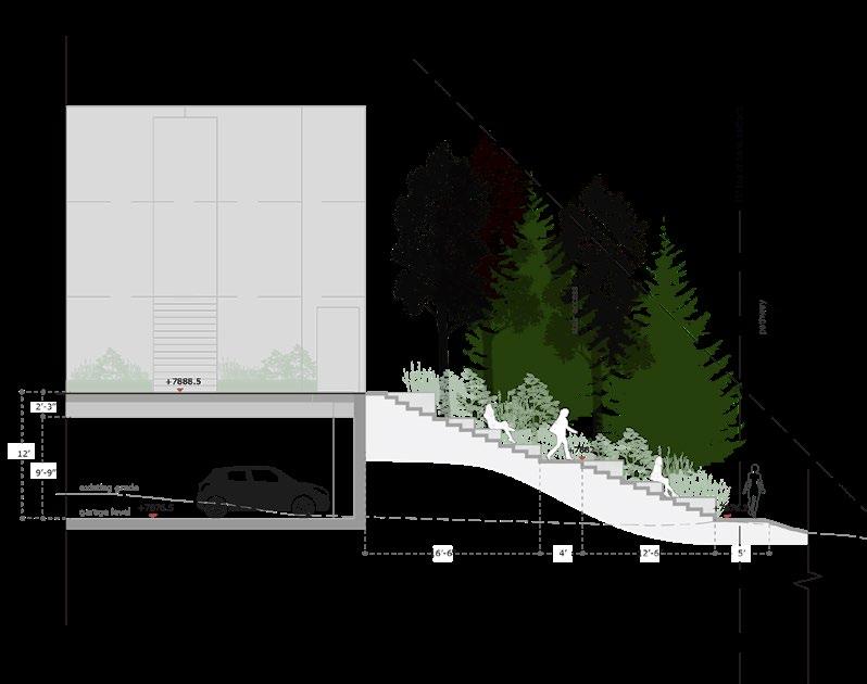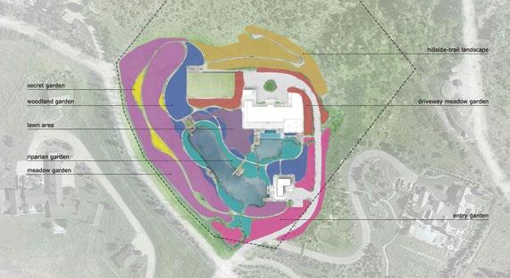 The natural grading of the site is leveraged to create dynamic views and experiences, including lookout platforms that offer panoramic vistas of the surrounding landscape. Personal hiking trails will be integrated into the design, winding through different elevation levels and landscape zones to promote exploration and discovery.