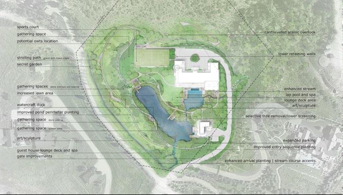 Situated in the scenic town of Aspen, Colorado, this landscape architecture project seeks to enhance the inherent beauty of a property defined by its unique grading and natural water features. With two distinct ponds at varying elevations and a natural waterfall connecting them, this site offers numerous opportunities for creating a landscape rich in experiences and ecological sensitivity. Our goal is to design a landscape that offers a journey through different zones, each with its own atmosphere and purpose, while emphasizing sustainability through the use of native plantings.