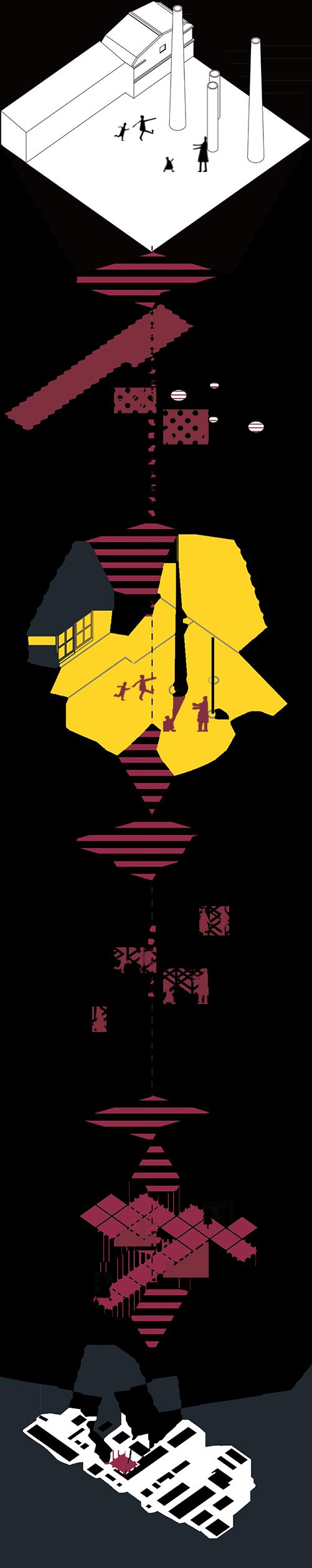 A traditional industrial built form is critically conserved by maintaining the outlook yet deconstructing the function. Deconstruction itself can be formalized in a spatial framework, which in turn imply and construct a form. Form, in this deconstructed way, is misled with the flow-made function.
