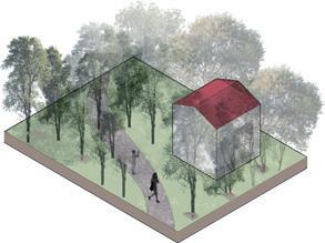 Reconstruct the chosen courtyard basing on the designated functions in the project. The three parts of courtyard are cut in half respectively three times, and he " Half Solution" applys well.