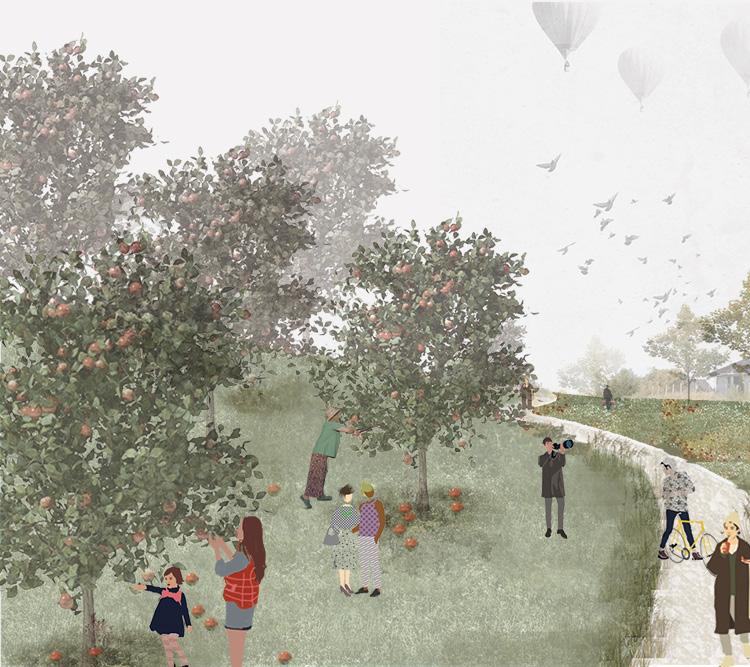 Imagine the buildings and structures are overlaped by a grid which gives the site organization and structure. The original structures can fit in the simple grid despite their complex appearances,with which the new artificial girds added will bring a style collision.