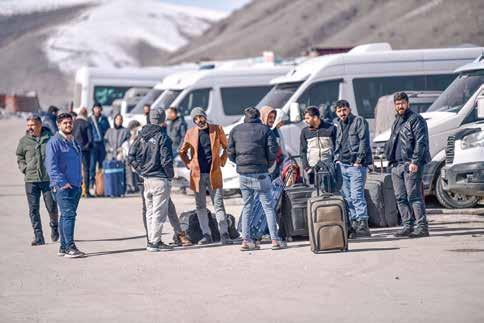 PASO MONTAÑOSO. En la frontera de Turquía con Irán, personas llegan en vehículos para escapar del conflicto.