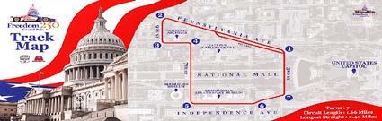 con una recta de 640 metros a lo largo de la Avenida Pennsylvania, enmarcada por el Monumento a Washington y el Capitolio de los Estados Unidos.