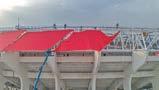 A 16 días del silbatazo para reinagurar el Estadio Azteca con el partido entre la Selección Mexicana y Portugal, las labores de remodelación continúan: Imágenes de 24 Horas muestran que, al interior del recinto ya se puede ver una de las pantallas instalada; en el exterior, en la parte superior, siguen colocando la película roja para las inclemencias climáticas, la zona premier -casi a nivel de cancha- luce con más butacas colocadas; el césped se ve instalado por completo y la rampa que permite que los asistentes lleguen al estadio ya está en el proceso de pintura. Las obras de remodelación comenzaron hace 20 meses. Las explanadas y accesos principales aún no están en su totalidad y también falta la instalación de las letras de “Estadio