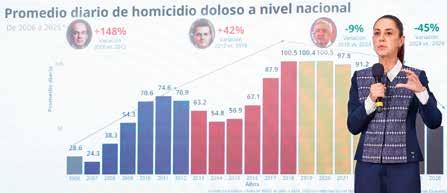 La Presidenta indicó que la cifra disminuyó de 91.7 diarios en 2024 a 50.8 hasta marzo de este año, mes que registró el menor número de casos desde 2016 P. 4