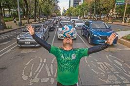 No importa si el clima o el calor dificultan su labor, Diego profesa una disciplina que se nota al dominar el balón, con facilidad lo lleva del suelo a su cabeza en donde lo sostiene por momentos, da vueltas sobre sí mismo e incluso besa el esférico y pasa a dominarlo de hombro a hombro y rodilla a rodilla, terminando con una reverencia para los autos que observan y le obsequian un par de pesos. / MIGUEL MARTÍNEZ CORONA