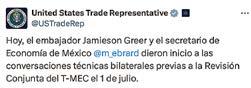 El secretario de Economía, Marcelo Ebrard, y el representante comercial norteamericano, Jamieson Greer, encabezaron el
