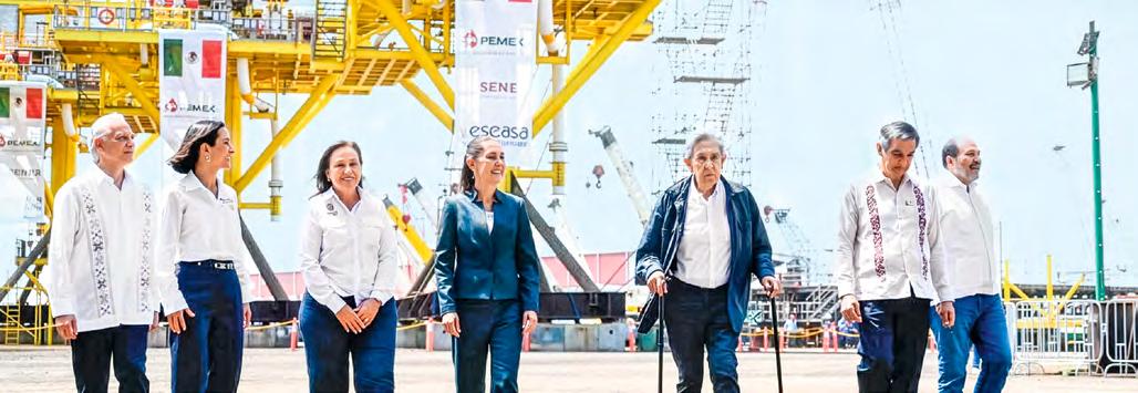 ENCUENTRO. Al conmemorar el 88 aniversario de la Expropiación Petrolera, la mandataria refrendó la defensa de la soberanía energética. En el acto reapareció Cuauhtémoc Cárdenas, quien estará a cargo de la Comisión Consultiva del Petróleo. Por su parte, la titular de Sener, Luz Elena González, resaltó el proceso de recuperación y fortalecimiento de Pemex
