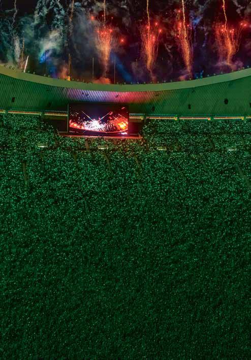 Sumado a ello y con el objetivo de brindar una experiencia inolvidable, Alejandra platicó que, tanto Vuela Global como 360 Media, implementaron innovadoras tecnologías; además del uso de las nuevas pantallas en el estadio, también emplearon 87 mil pulseras con luces LED, las cuales utilizan un sistema de origen canadiense llamado PixMob, las cuales se sincronizan al ritmo de la programación establecida para finalmente mostrar una función de fuegos artificiales.