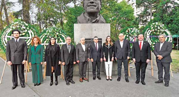 HOMENAJE. Ante el busto del aspirante presidencial, el dirigente nacional del PRI, Alejandro Moreno, encabezó una guardia de honor acompañado por legisladores e integrantes del Comité Ejecutivo Nacional.