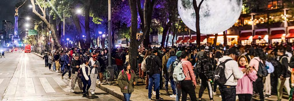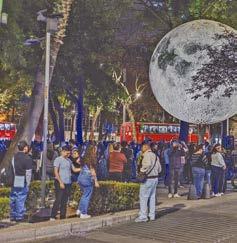 MAJESTUOSA. Como parte del Festival Internacional de las Luces, la luna se posa en pleno Paseo de la Reforma para sorpresa de los visitantes, que no pierden la oportunidad de tomarse fotos frente a ella.