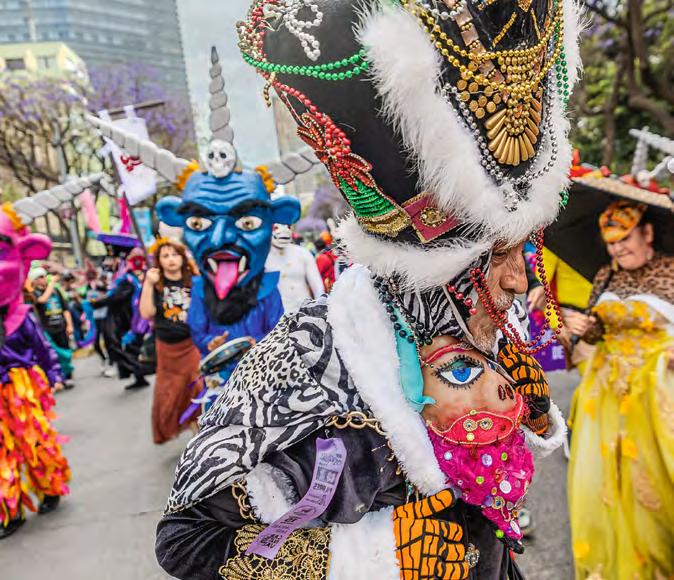 TRADICIÓN Y COLOR. La tercera edición del Carnaval de Carnavales congregó a más de 70 mil asistentes en el centro de la CDMX. Durante el avance de las comparsas se observaron chinelos, huehues, charros, escaramuzas, mojigangas, diablos, entre otros, provenientes de los pueblos y barrios originarios de la capital.