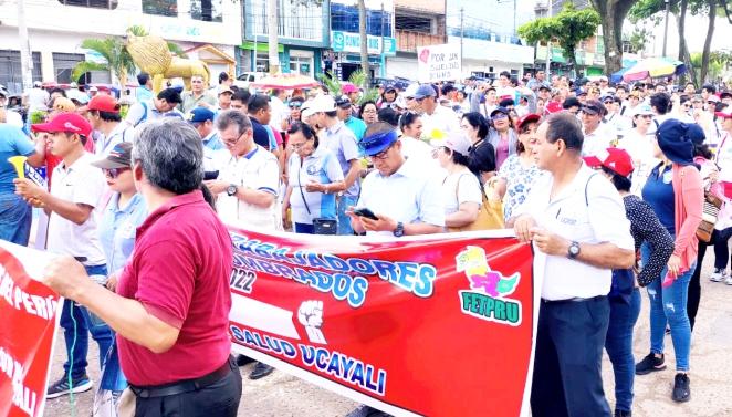 Cientos de trabajadores del sector público, entre ellos, del Gobierno Regional de Ucayali, salud, educación, agricultura y otros, salieron