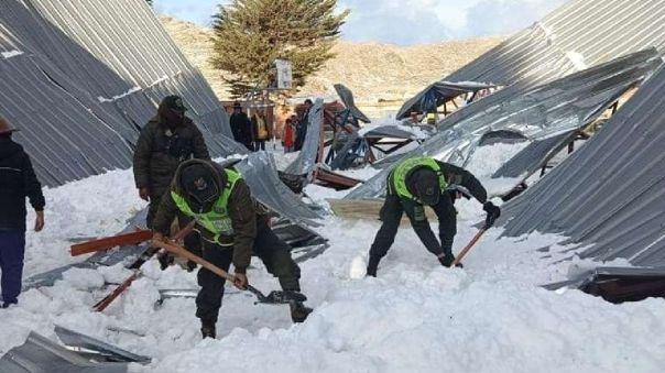 Lasautoridadesmunicipales ydesaluddelapoblaciónde Achacachi en Bolivia confirmaron este domingo el fallecimiento de al menos cuatro personas y 17 heridos por el desplome del tinglado de unaescuelaquecolapsópor elpesodelgranizoacumulado mientras se celebraba unagraduación.
