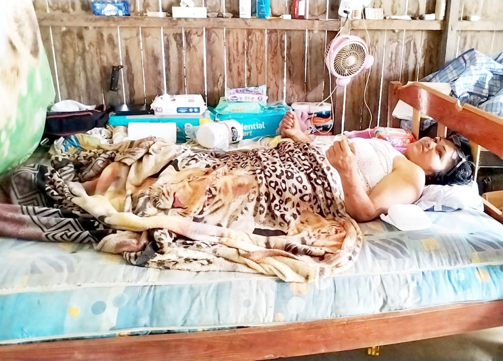 La madre de Alexander, Iris Amanda Sandi Ramírez, de 50 años, está postrada en cama más de un año.Nopuedecaminarpor problemas de la columna debido a una hernia Cervical. Por eso el pequeño niñotienequecuidarla,cambiarlepañalesyhastacocinarenlacasaubicadaenel Jr Perené Mz. “D” – Lte. 10- asentamiento humano NuevaAmazonía.Yparael colmo,losdueñosdeloajeno recientemente le robaronsubalóndegas.