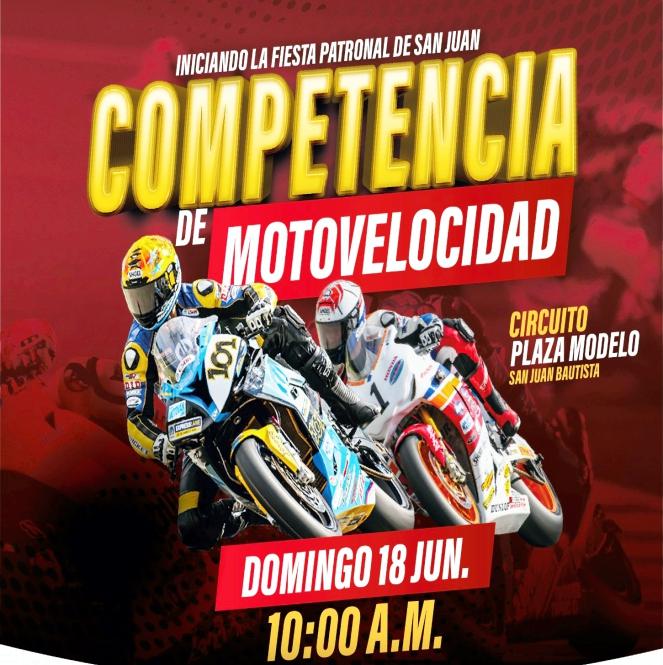 En el marco de las actividadesporlaFiestaPatronalde San Juan Bautista, este domingo18dejunioapartirde las 10:00 a.m., en la Plaza Modelo,serealizarála“Gran CompetenciadeMotovelocidad”, organizada por la subgerencia de Educación de la Municipalidad Distrital de SanJuanBautistayliderada por su alcalde Dr Joel ParimangoAlvarez. Dentrodelosrequisitospara participar en la competencia tenemos: Ser mayor de edad,presentarsuDNIalmomentodelacarrera,respetar las medidas de seguridad
