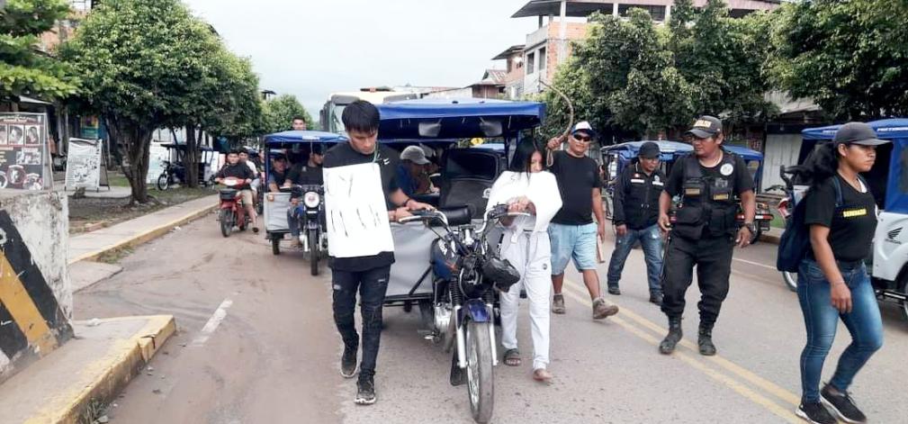Hasta el cierre de esta edición, lo detenidos eran paseados por calles del centro poblado de Puerto Súngaro, juntoalmotocarqueintenta-