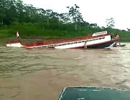 Un bote de madera naufragó en aguas del río Amazonas tras impactar con un banco de arena.