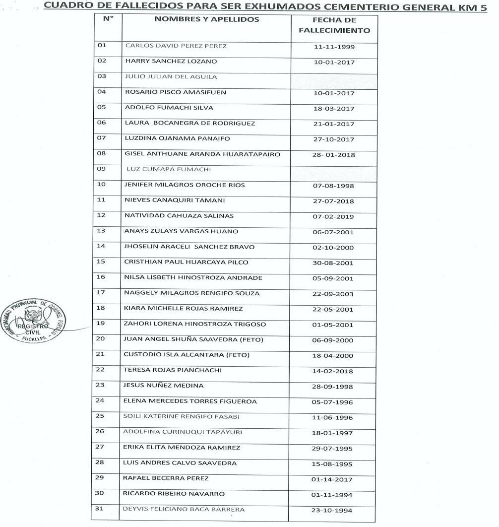 Mozombite (35), Cristian Angulo Chanchari (23), Ronald Satalaya Tuanama (46). Los 7 detenidos, entre